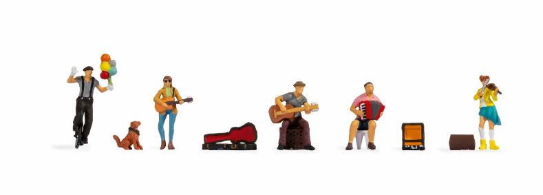 Gatumusiker och jonglör på enhjuling