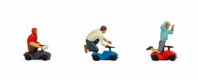 3 st Bobby-Car med förare i skala H0